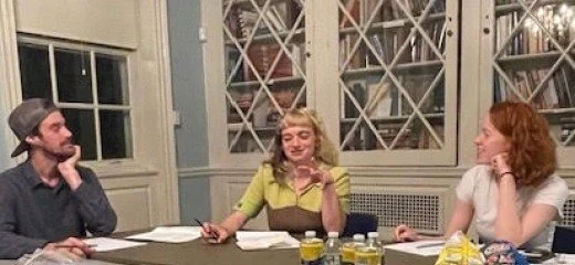 Amalia Colón-Nava and Caitlin Green split the DANCE UP CLOSE bill at Christ Church Neighborhood House before a full audience. After the performance, I met with audience members for a Write Back Atcha. As a warm up, we shared words that Green's performance brought up for us: cellular, jarring, automated, systematic, rageful, trapped. Words soon turned into phrases: “ellipses of repetition” and “bubbling under the surface inside a container” (Abigail Mosier). Because both pieces contained significant textual elements, we asked ourselves: how do we represent the way words show up on stage? We experimented with describing movement, in all its ephemeral particularity.